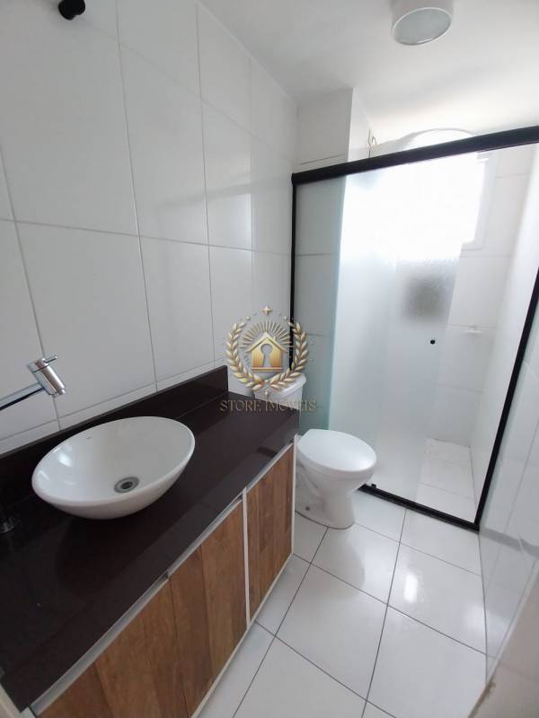 - 1 banheiro com gabinete e box de vidro;