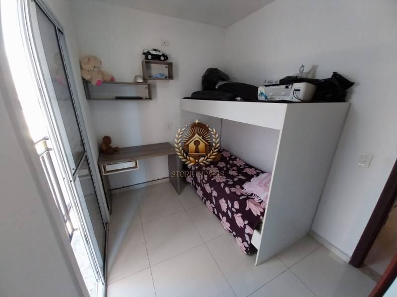 - Dormitório de solteiro com beliche, mesa de escritório e prateleira